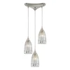 Our elegant Kersey series Pendants evoke the languid silhouette of a moonlit bell-flower. Uniquely banded tiers formed from thick crystalline glass brilliantly refract light. Modish Satin Nickel hardware lends an updated feel.