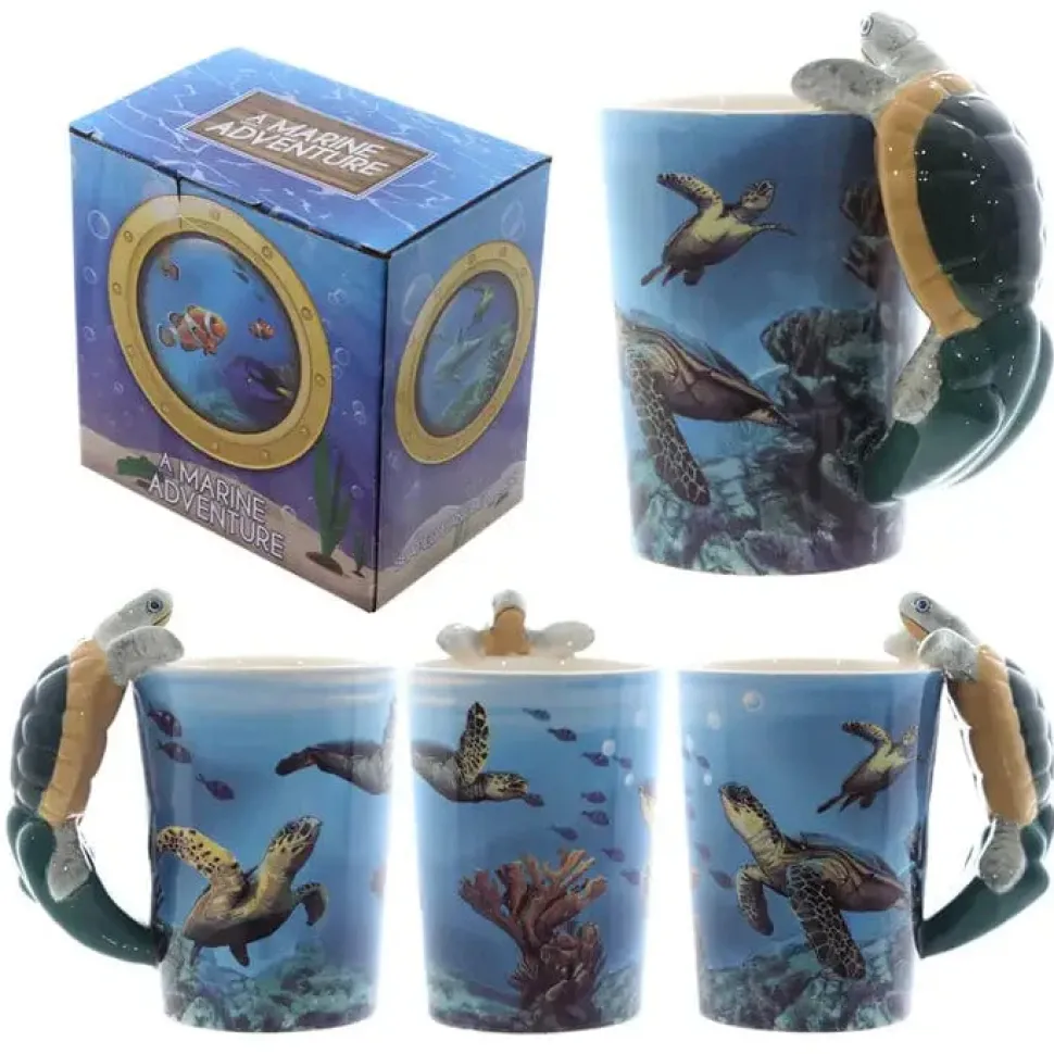 Introducing the 3D Underwater Sea Turtle Mug. Take a sip and dive into your day with this playful sea turtle mug. The 3D design brings the mug to life, making it a unique addition to your mug collection. Sip in style and add some charm to your morning routine.
