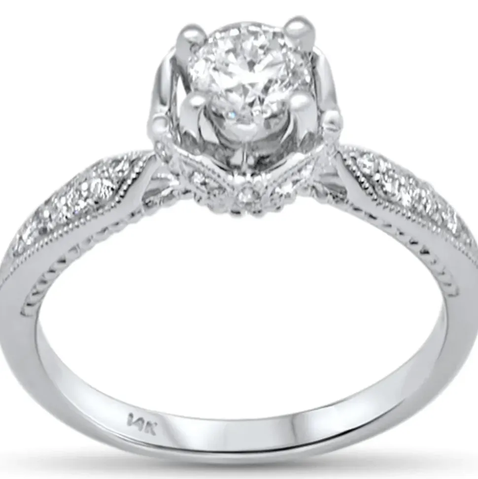 Sparkling Centerpiece: Featuring a .77ct G color and SI clarity diamond at the center, this engagement ring captivates with a brilliant sparkle, symbolizing the purity and endurance of your love.