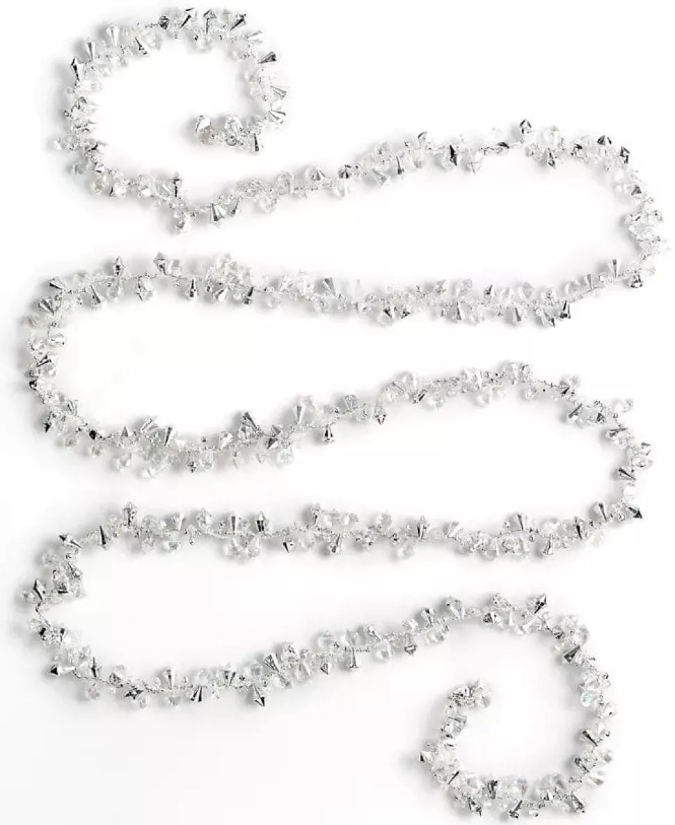 Add an icy touch to your holiday décor with this 9-Foot Iridescent and Silver Beaded Garland from Kurt Adler. Its beautifully detailed design features textured clusters of iridescent and silver beads of varying sizes for a multi-faceted look.