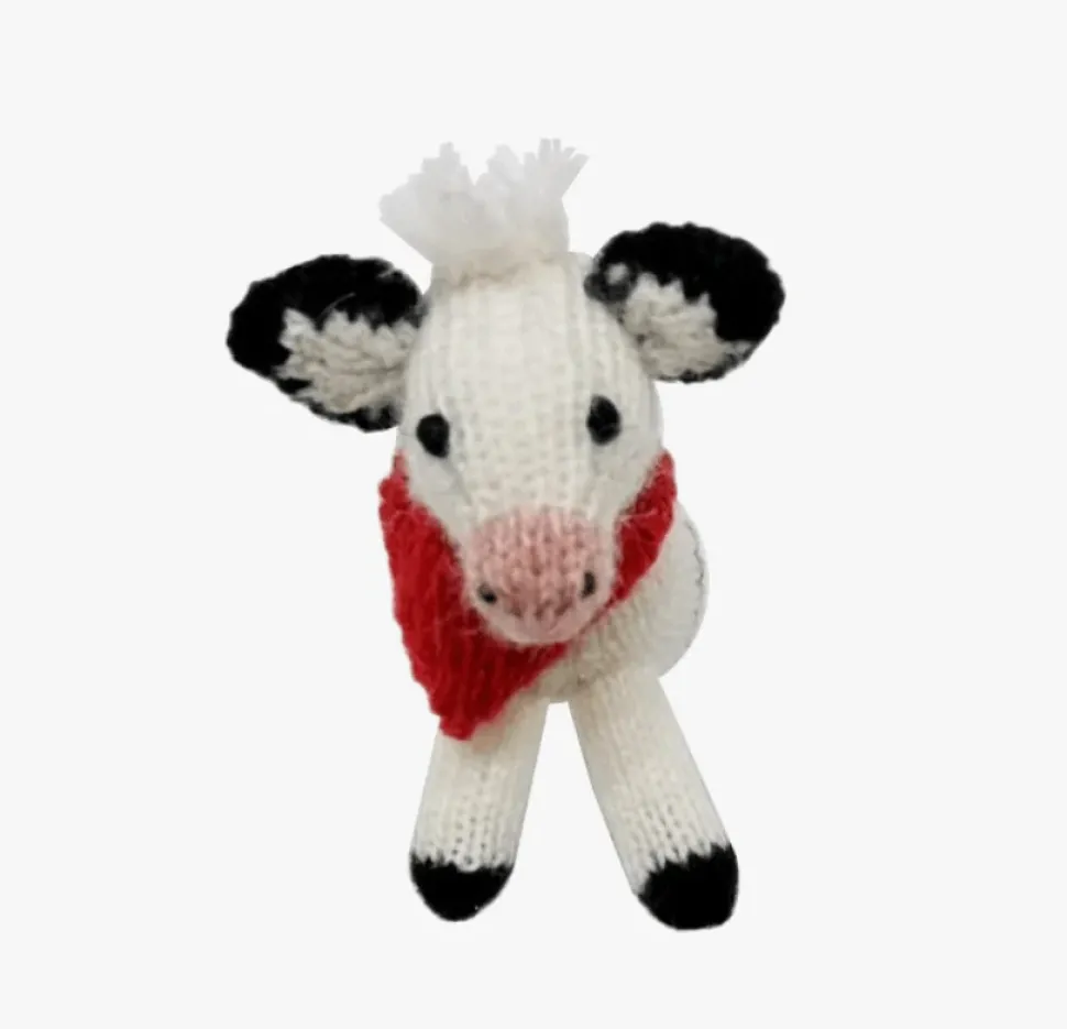 Adorable handmade knit plush cow ornaments! Cutest black and white Holstein or funny brown cow on skis in two shades. These precious little cows will steal your heart with their cuteness. Perfect gift for cow lovers or farm-themed decorations.