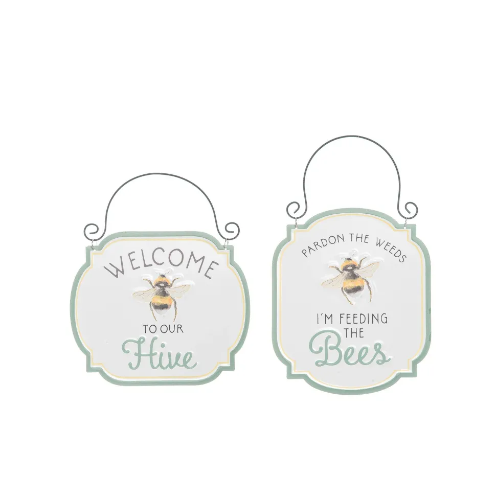 Bee Lovers! Decorate for the season with this cute Bee Embossed Metal Sign Set. Perfect for your home or as a gift for a friend or loved one. It’s sure to delight year after year.