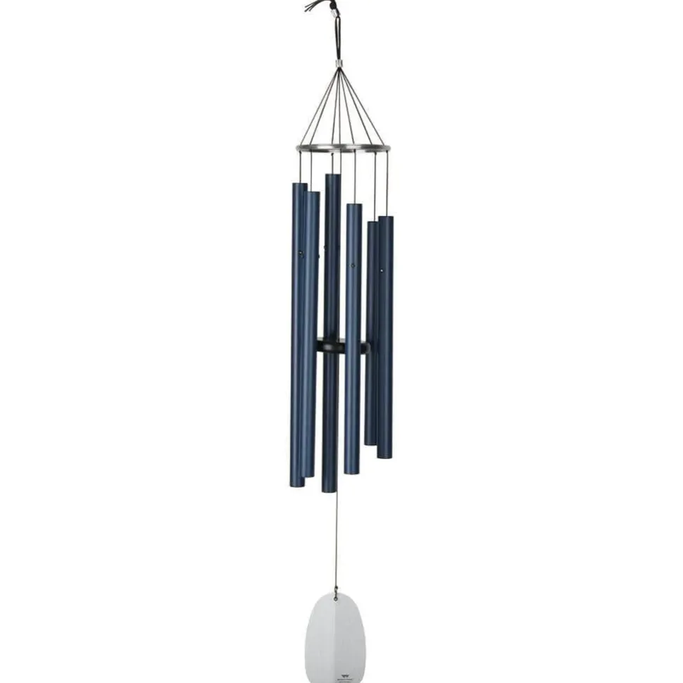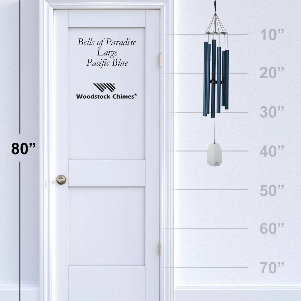 Contemporary chimes in a soothing shade of blue to go with its serene song. The tuning of our Bells of Paradise Chimes is based on an ancient system known as just intonation. This means that the frequencies at which the different tubes vibrate are related to one another by simple whole-number ratios. Tones that are related in this way produce the purest, most beautiful musical intervals. The elegant look and evocative sound of this chime will deeply satisfy your longing for paradise. Made of aluminum tubes which are specially suspended, these chimes resonate longer than other windchimes, bathing you in enduring harmony every time the wind blows. Hang this chime in your home or yard and enjoy the sounds of paradise right where you are.