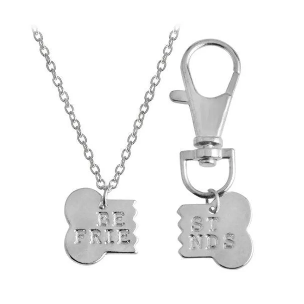 This cute set is perfect for the dog lover in your life, even if that is you! Cute key chain/clip with the other half of the bone to the pendant necklace that says “Best Friends”. The clip is perfect for your dog’s collar!