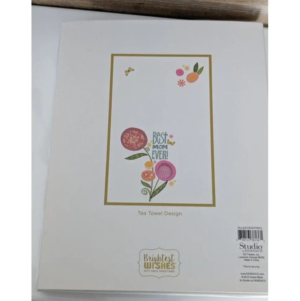 The Brightest Wishes collection includes functional gifts and a greeting card wrapped up in one. A white colored rectangular tea towel with colorful flowers and a butterfly printed over the surface with a message in the middle. Greeting card is attached to gift box for a complete gift to go. Comes with gift box packaging with window. This cheerful and upbeat, artful design offers a one-of-a-kind gift for your mom. Sentiment: Towel: Today is going to be awesome, Card: Today is going to be awesome…pretty much like you. DEMDACO Best Mom Tea Towel and Greeting Card by Brightest Wishes Collection. Made of 100% cotton. Measures 17″ w x 27″ h.