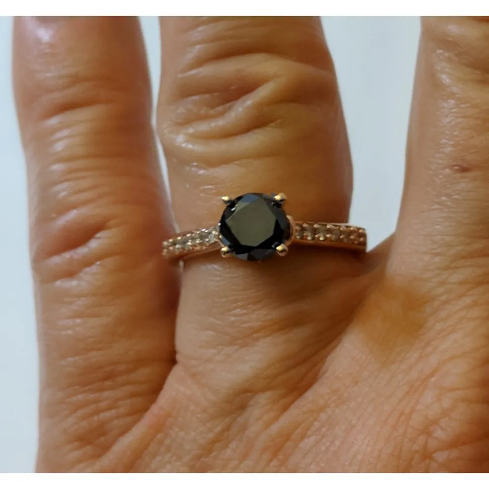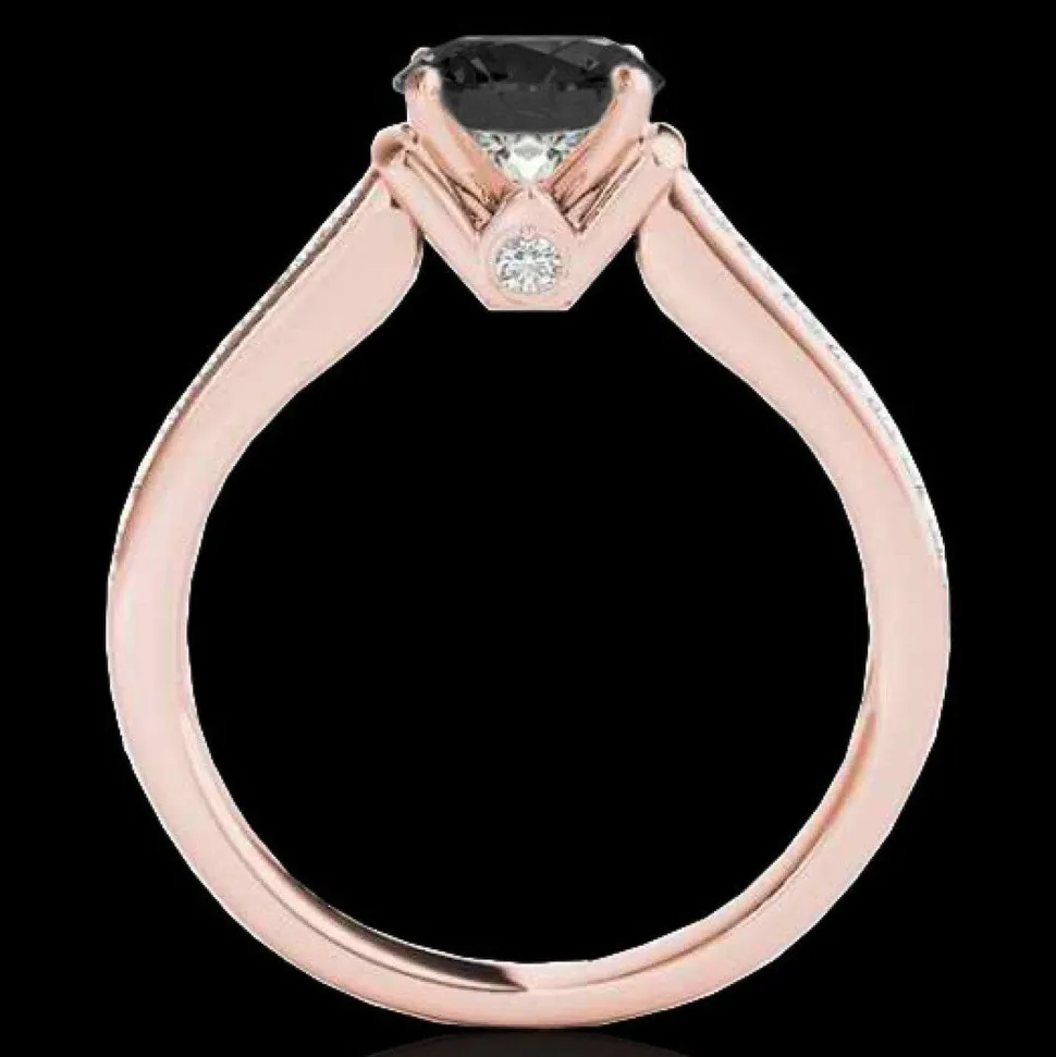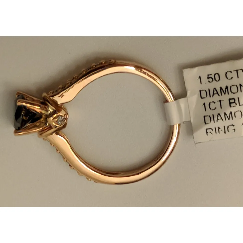 1.5 CTW Certified VS Black Diamond Solitaire Ring 10K Rose Gold —- Luxury Designer Brand Ring GIA Appraised at $2050.