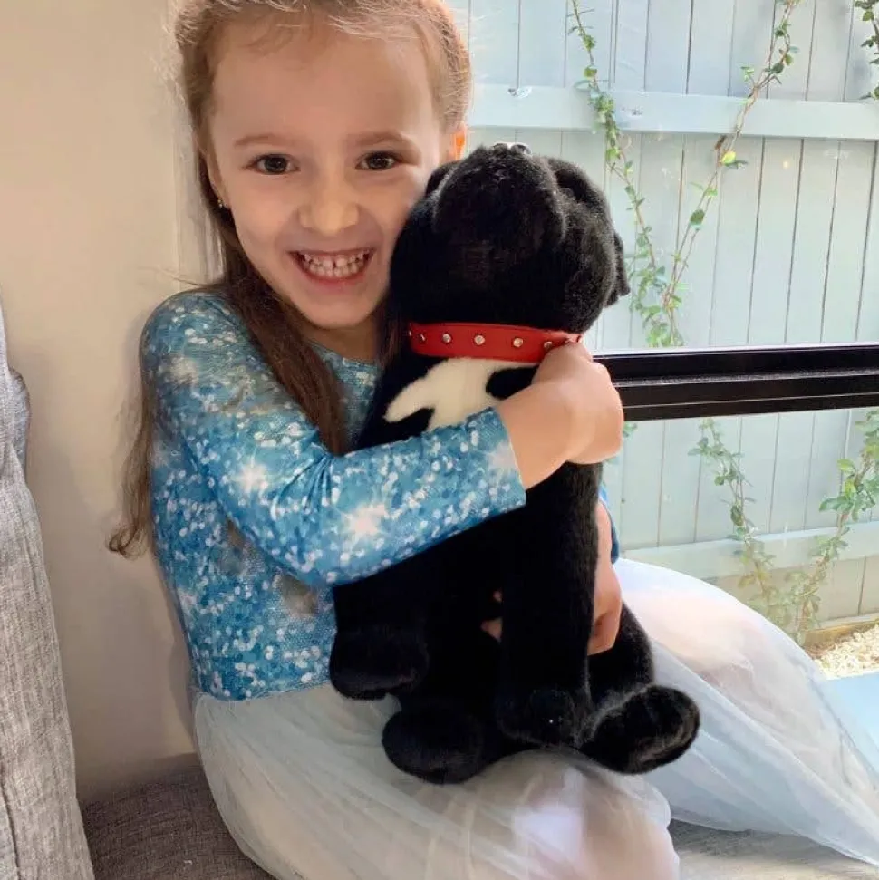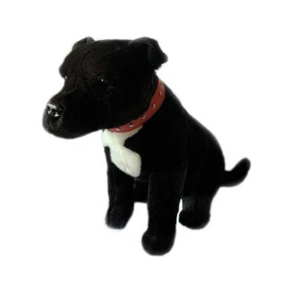 Meet DJ, an exquisitely soft and realistic handcrafted Black Staffordshire Bull Terrier plush toy, stuffed animal.