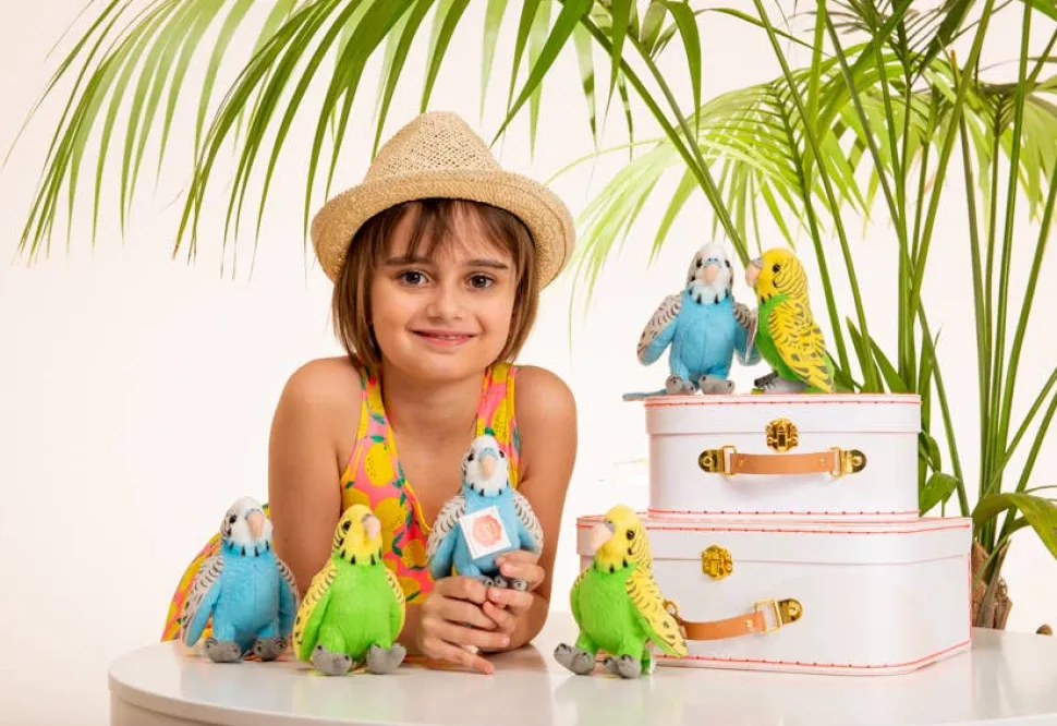 The cute budgie from the Teddy Hermann Collection looks very similar to the real thing! This adorable little exotic bird is not only suitable for imaginative children’s play but is also an attractive eye-catcher in any living space. The budgie is made of high-quality plush and filled with soft polyester wadding made from 100% recycled PET.