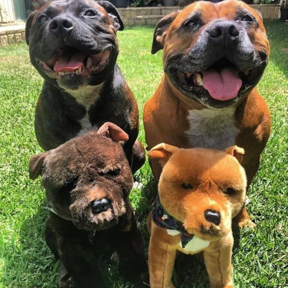 Meet Scooter, an exquisitely soft and realistic handcrafted brindle Staffordshire Bull Terrier plush toy. Staffies are extremely active, strong, tenacious, robust, courageous, and enthusiastic. They are also very loyal and quite protective and make the most wonderful family pet and companion and have been nicknamed “The Nanny Dog” because they are known to be so good with children. They do need to be trained from a very young and kept occupied and exercised regularly, otherwise they can’t stop themselves from becoming a little bit destructive.