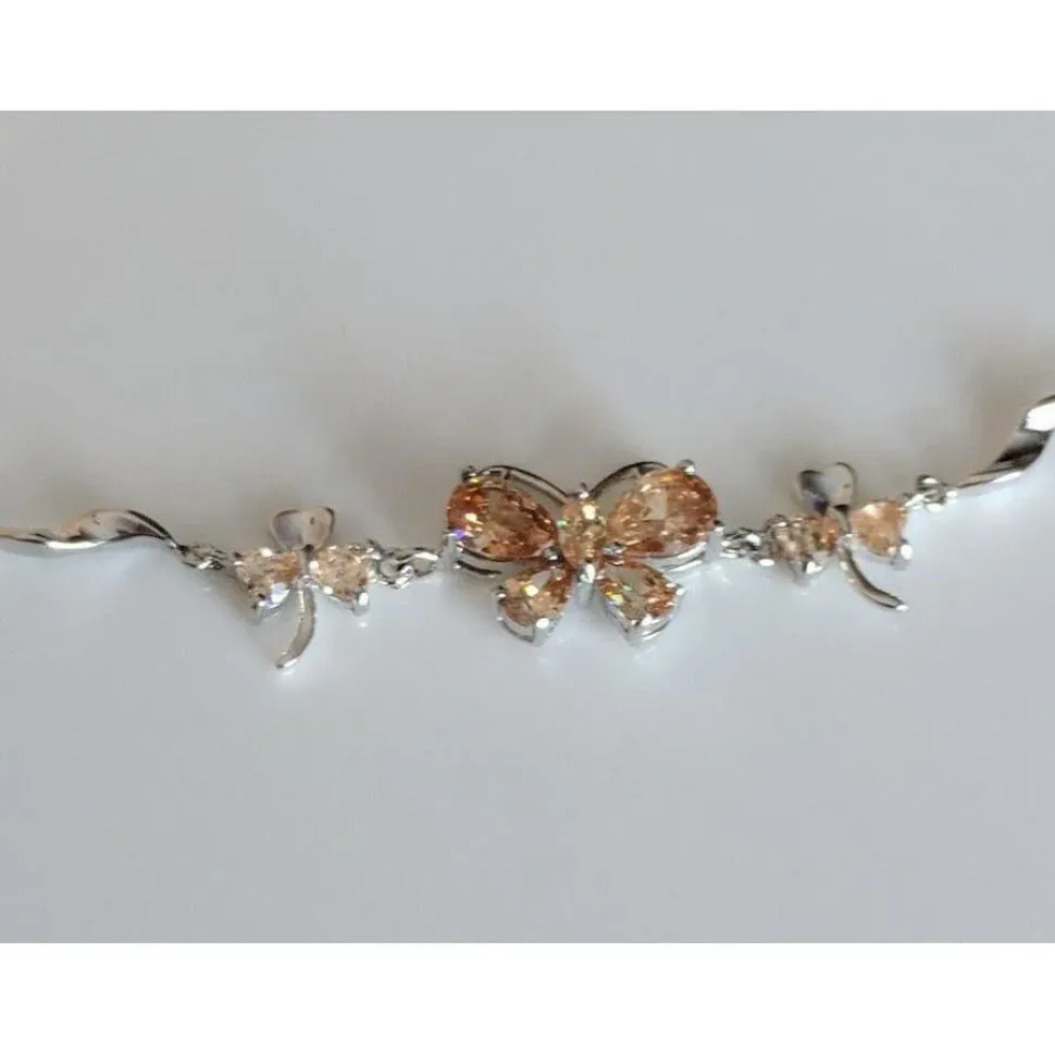 Beautiful butterfly bracelet for the lady who loves butterflies and the transformation to something of beauty that they represent. You will love this beautiful bracelet! Choose purple amethyst , peridot green or a topaz light yellow CZ. Butterfly jewelry makes great graduation gifts.