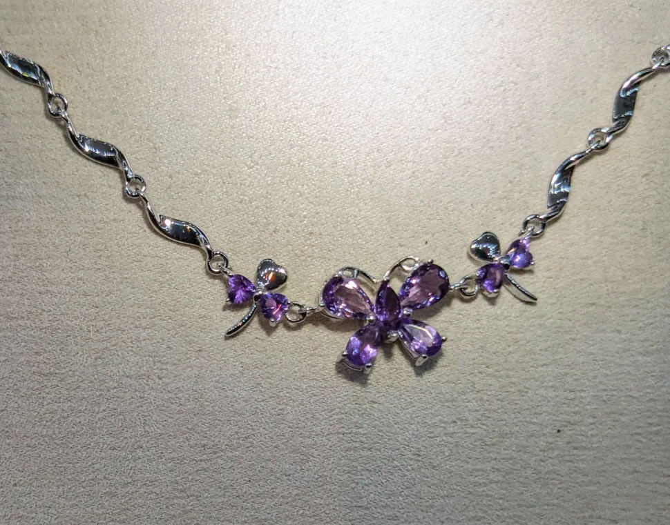They are all beautiful and they would both be excellent matches for our butterfly jewelry sets! They are solid lead-free 925 fine sterling silver with AAA CZ and our newest creation is genuine Amethyst gemstone.