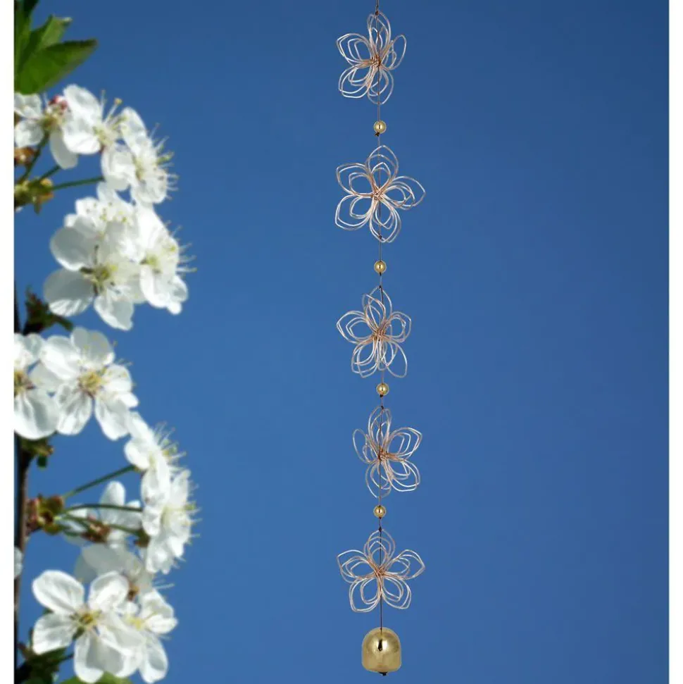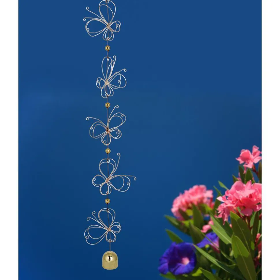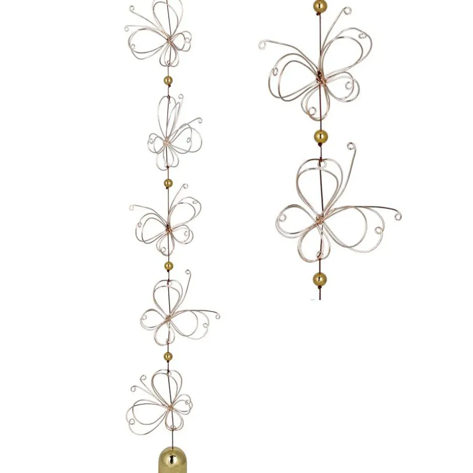 Material: Rose gold color steel wire butterflies, brass colored beads, brass bell