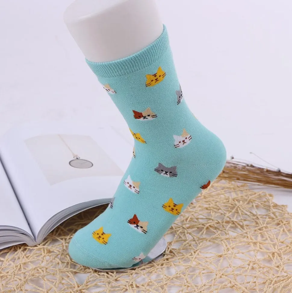 Your feet will be toasty and cute in these adorable cat faces socks. Everyone will be so envious. Super soft 100% cotton, breathable, high quality. Perfect for cooler weather and giving away to your favorite cat lovers! Very nice quality.