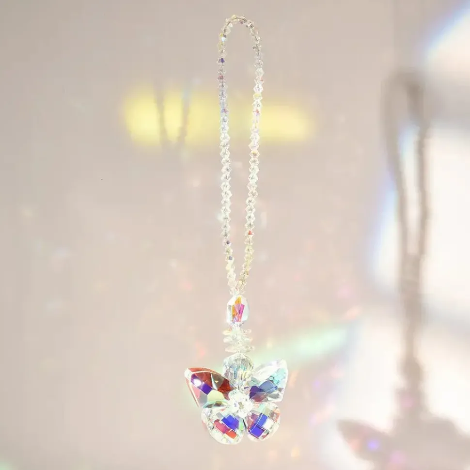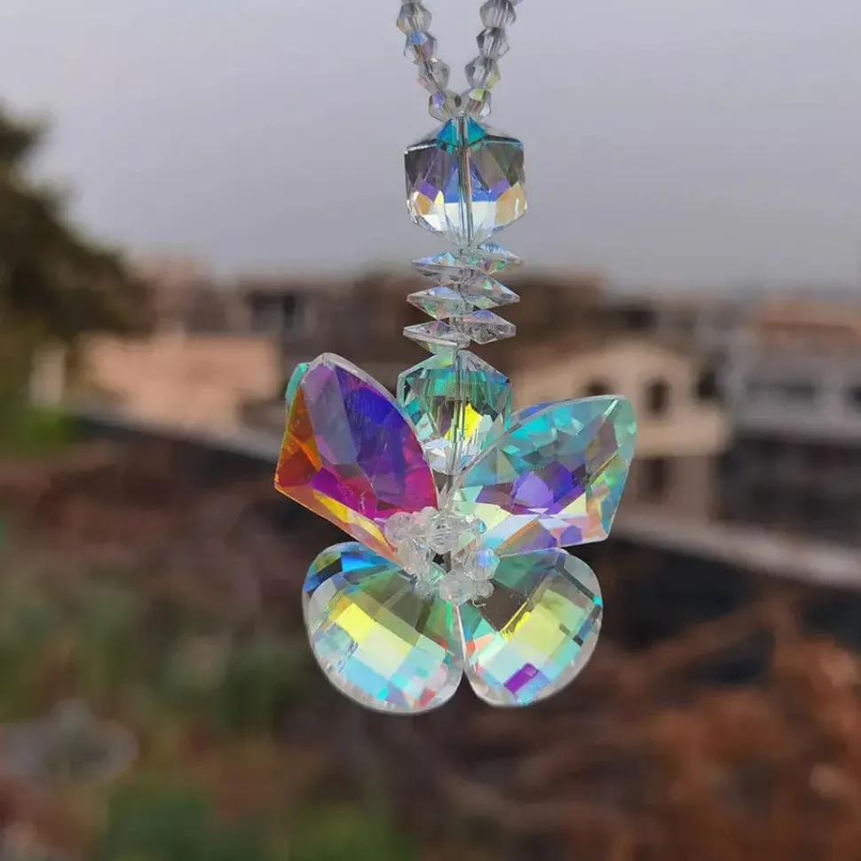 These beautiful, sparkly butterfly suncatchers have a wristlet style crystal beaded holder to hang them from anywhere easily. Perfect for around a rearview mirror. These are wonderful gifts for our butterfly lovers or a young lady. Supply is limited.