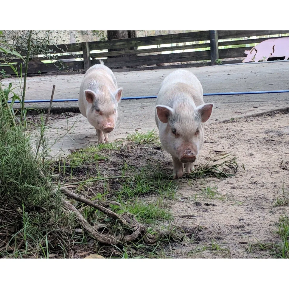 The purchase of one of these necklaces feeds a real rescued piggy for 1.5 months!