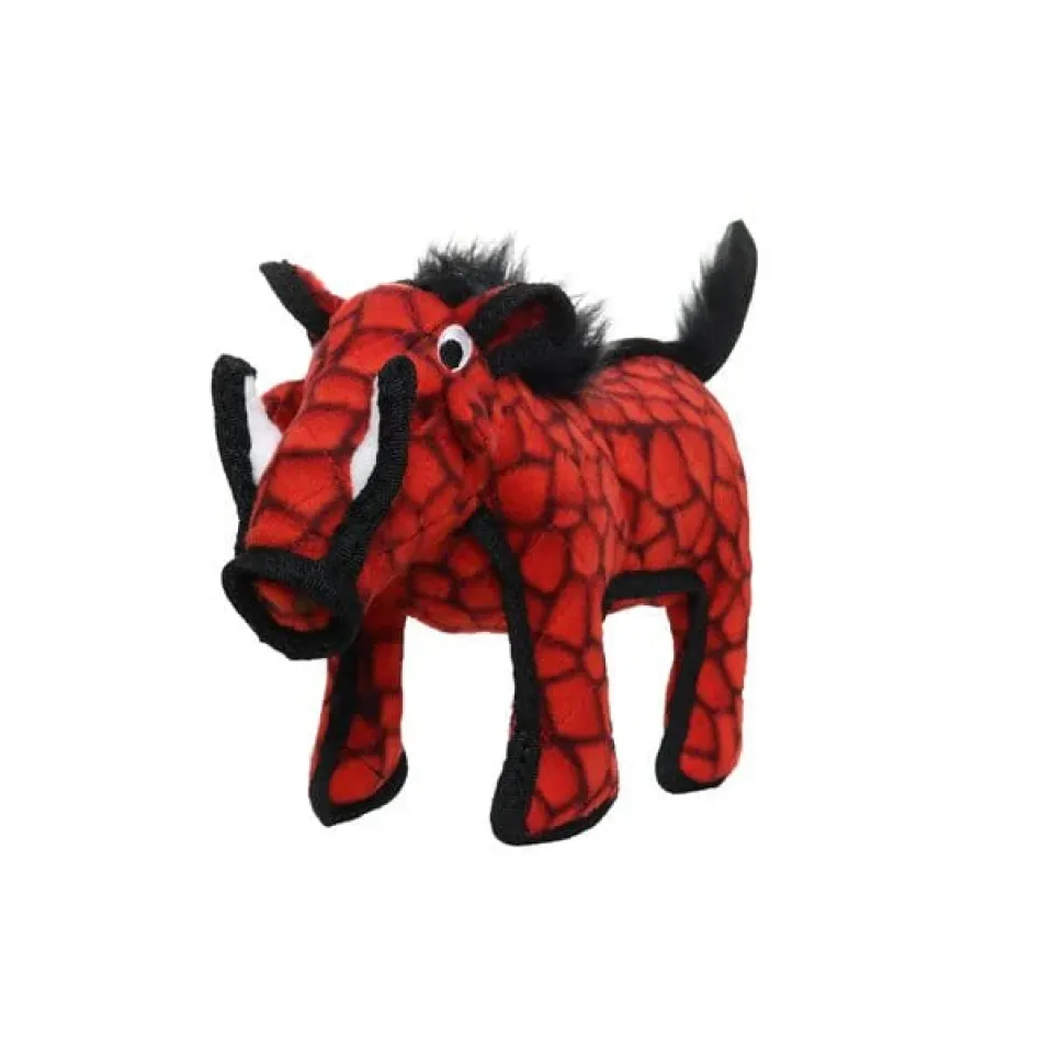 Tuffy Desert Red Warthog. TUFFY® toys are the most durable dog toys on the market! With up to 4 layers of material, our toys are bonded and sewn together with up to 7 rows of stitching for added durability. A protective webbing is added to the outside edge to cover the seams and make the toy even stronger. Squeakers are sewn inside protective pouches for your dog’s safety. This extra measure of safety can give you the time you need to remove the toy in the event your dog reaches the core. TUFFY® toys float in water and are machine washable (air dry).