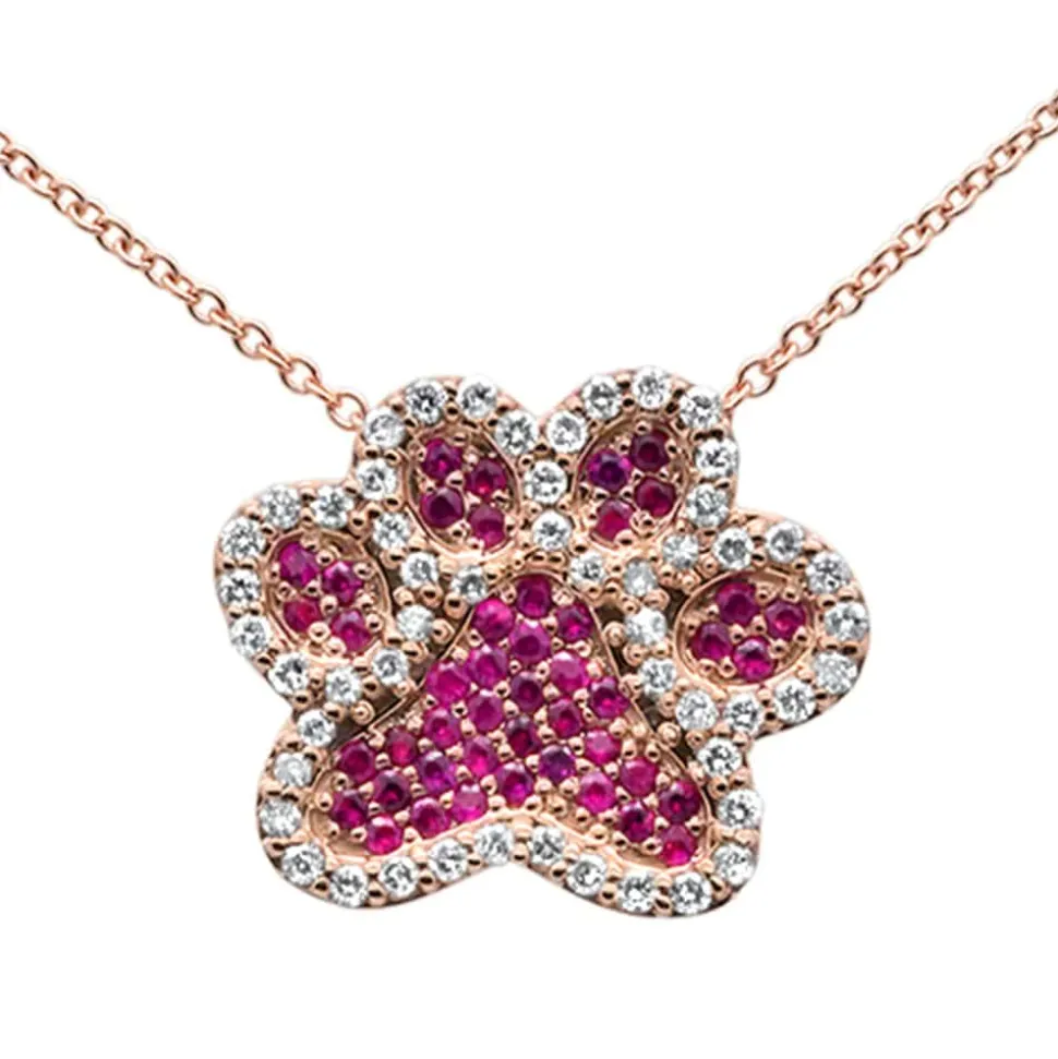 Introducing our .53ct G SI 14K Rose Gold Diamond & Ruby Dog Paw Pendant Necklace – a heartwarming blend of elegance and affection. A perfect gift for the dog lovers!