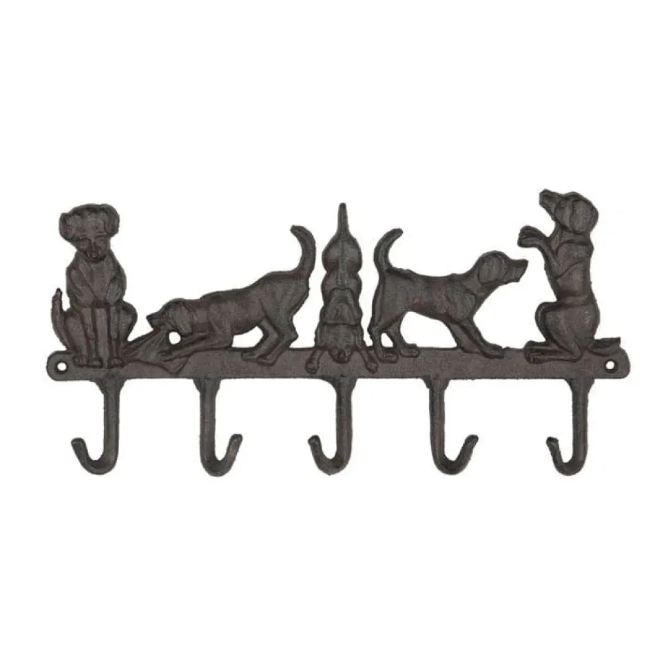 Heavy duty playing dogs iron wall hook, ready for your keys or dog leashes! This is a very well made wall hook of solid iron that will be a household treasure for many years. Get one for your friend too! This would make a beautiful gift, it is very high quality.
