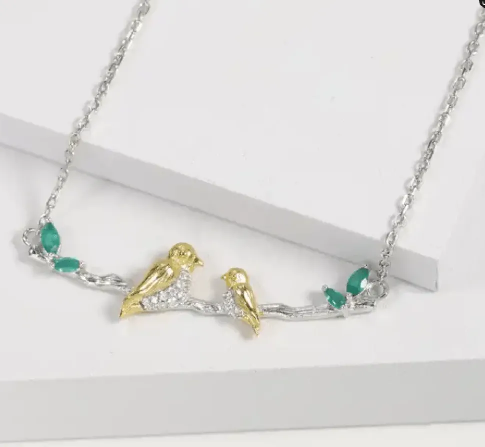 Elegant Bird Necklace w/Gemstone 925 Sterling Agate Silver Handcraft Necklace Sliver Gold Plated Collection