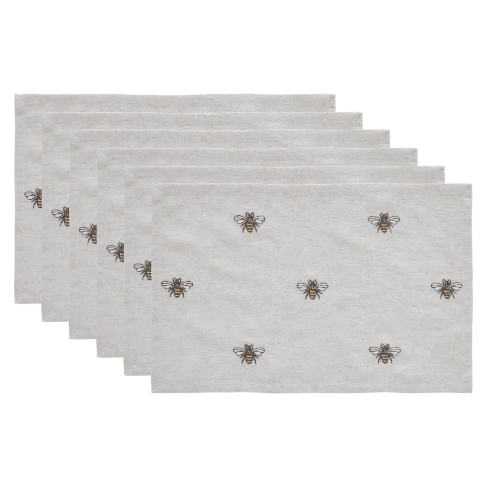 OR Set of Placemats: 12×18 inch Embroidered Bee Placemat Set of 6