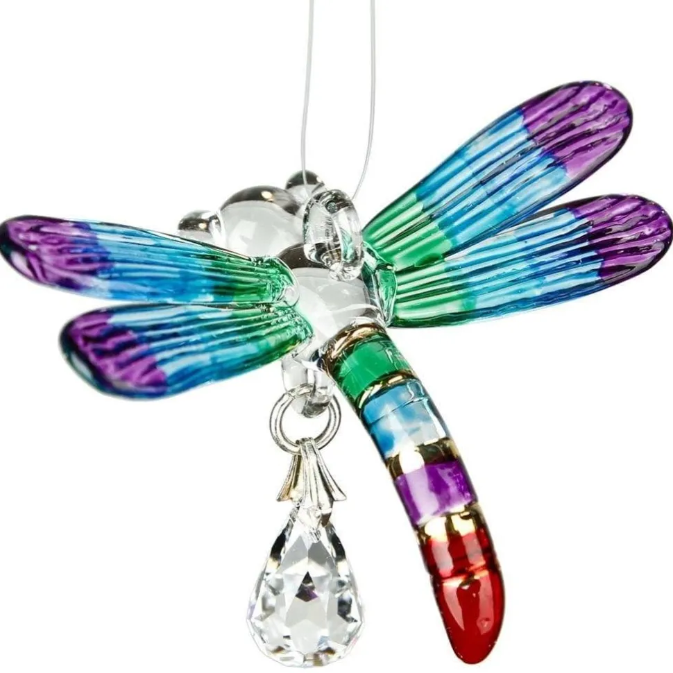 Dragonflies represent change – they remind us not to fight what comes, but travel “with the wind.” Hand-painted in pastel shades, this hand-blown glass dragonfly tops a genuine Austrian crystal that sparkles and shines in the sun.