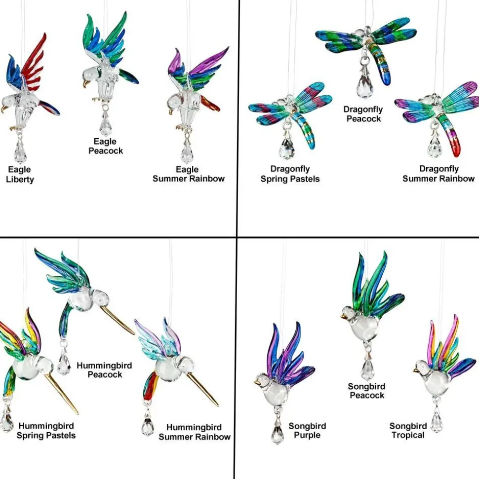 A gorgeous selection of handcrafted bird suncatchers with a sparkling Austrian crystal to make rainbows of beautiful light wherever you decide to hang them. Genuine Woodstock Chimes handcrafted creations of exquisite, high-quality art. These make beautiful gifts!