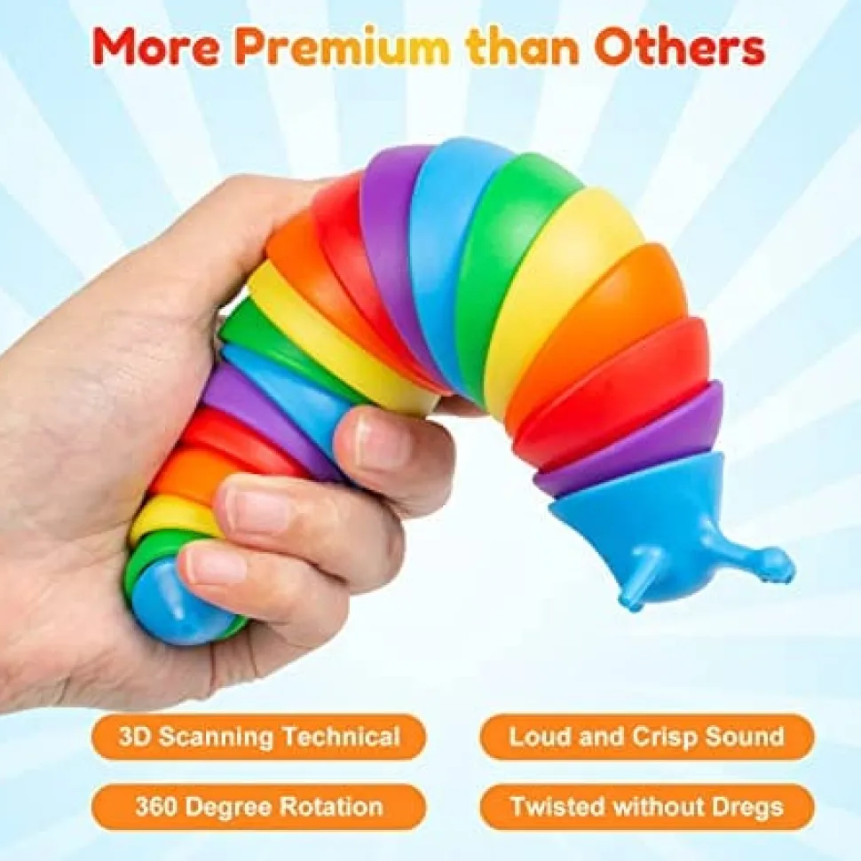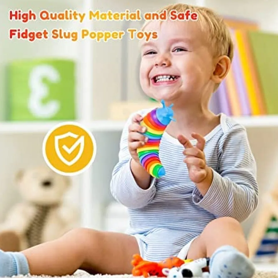 - 【EXCELLENT CUSTOMER SERVICE】: We have a 24-hour customer service team, please let us know if you have any issues with the product itself. We’ll try our best to resolve your problems. The fidgets popping slug toy full of possibilities, and you can try to create a new game with your creativity.