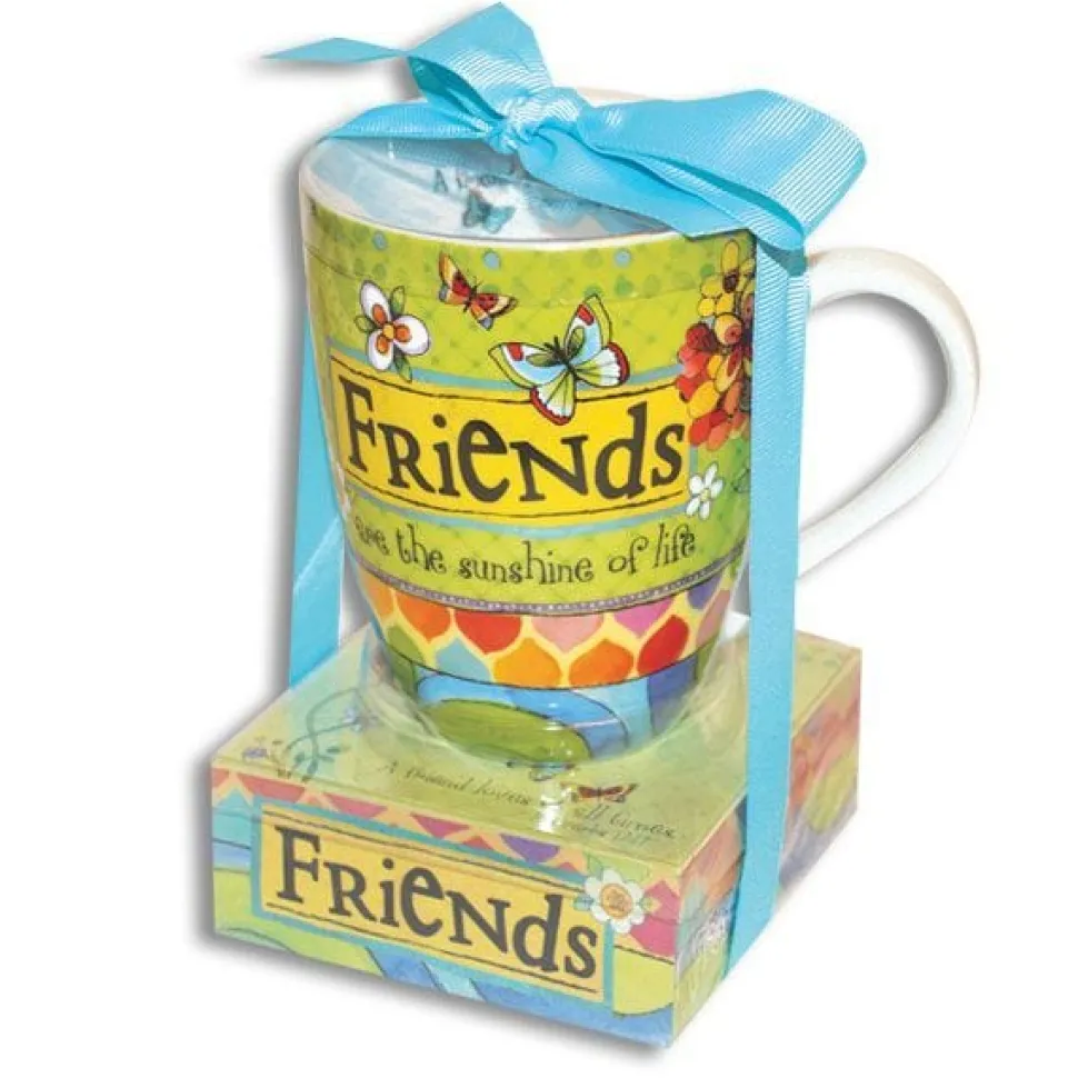 This gift set includes a ceramic coffee mug and a coordinating notepad. Both items feature a bright and colorful design of flowers and butterflies. “Friends are the sunshine of life” is printed on the mug. Makes a great birthday gift or “just because” gift for a special friend.
