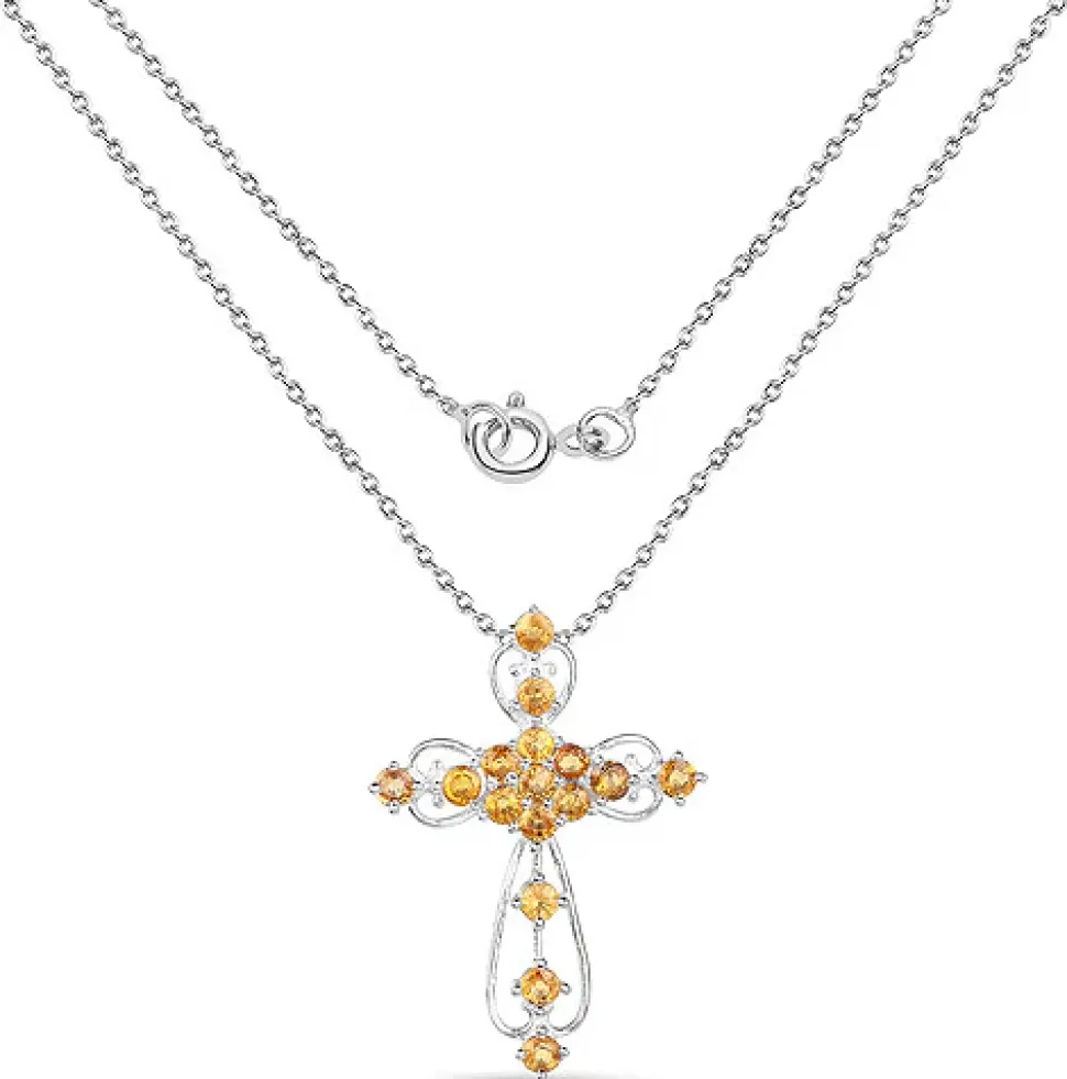 Spring ring clasp, yellow sapphire pendant cross necklace.