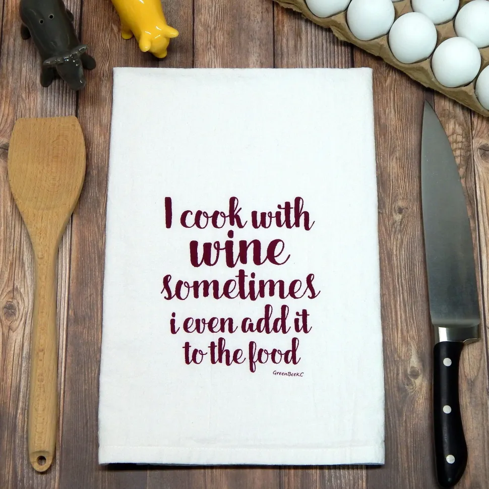 Green Bee KC Tea Towels – I Cook With Wine Sometimes I Even Add It to The Food Towel