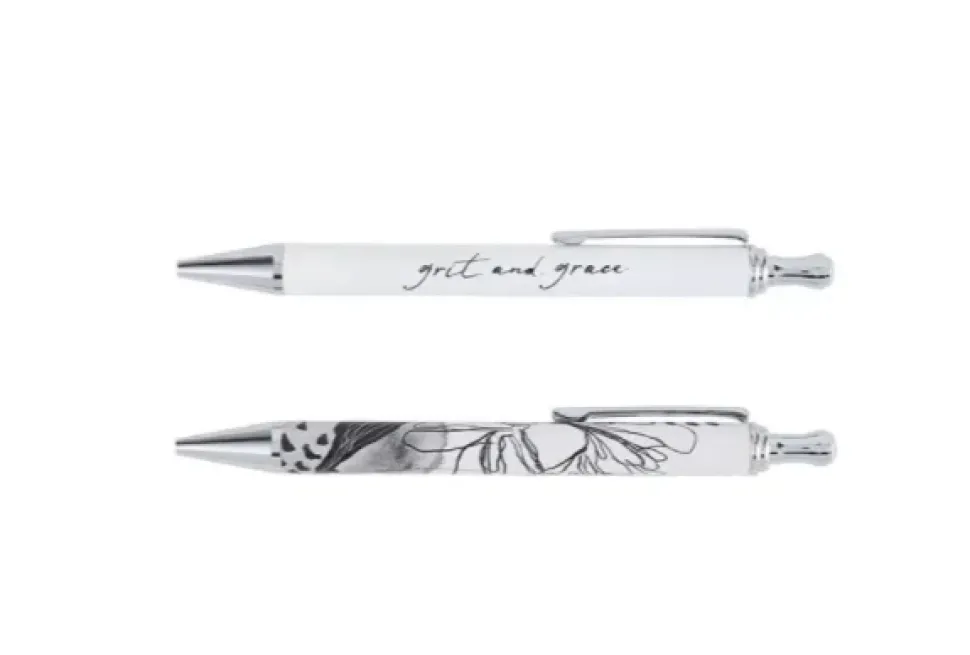 This Grit and Grace Pen Set makes a great graduation gift, Secret Santa gift, and anytime gift! Two pens are packaged in a nice gift box that will make an attractive and practical small gift for any occasion. Both pens are medium ballpoint tip in black ink, with gold-tone tips and clips.