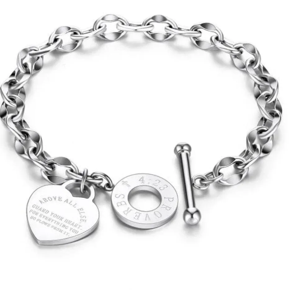 Guard Your Heart Christian Bracelet. Gorgeous gift for the young person in your life to remind them of the most important thing in their daily life, to guard their heart. Perfect gift for a grad. Beautiful 14K gold plated stainless steel, high quality. Engrave-able for you to personalize if you choose.