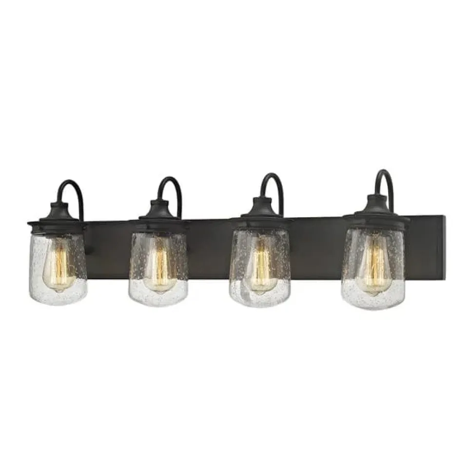 “Illuminate your bathroom with the Hamel 4-Light Vanity Lamp. Featuring a sleek design and glass shades, this lamp provides 4 lights for maximum brightness. Perfect for any modern or contemporary bathroom, the Hamel vanity lamp is a stylish and functional addition to your space.”