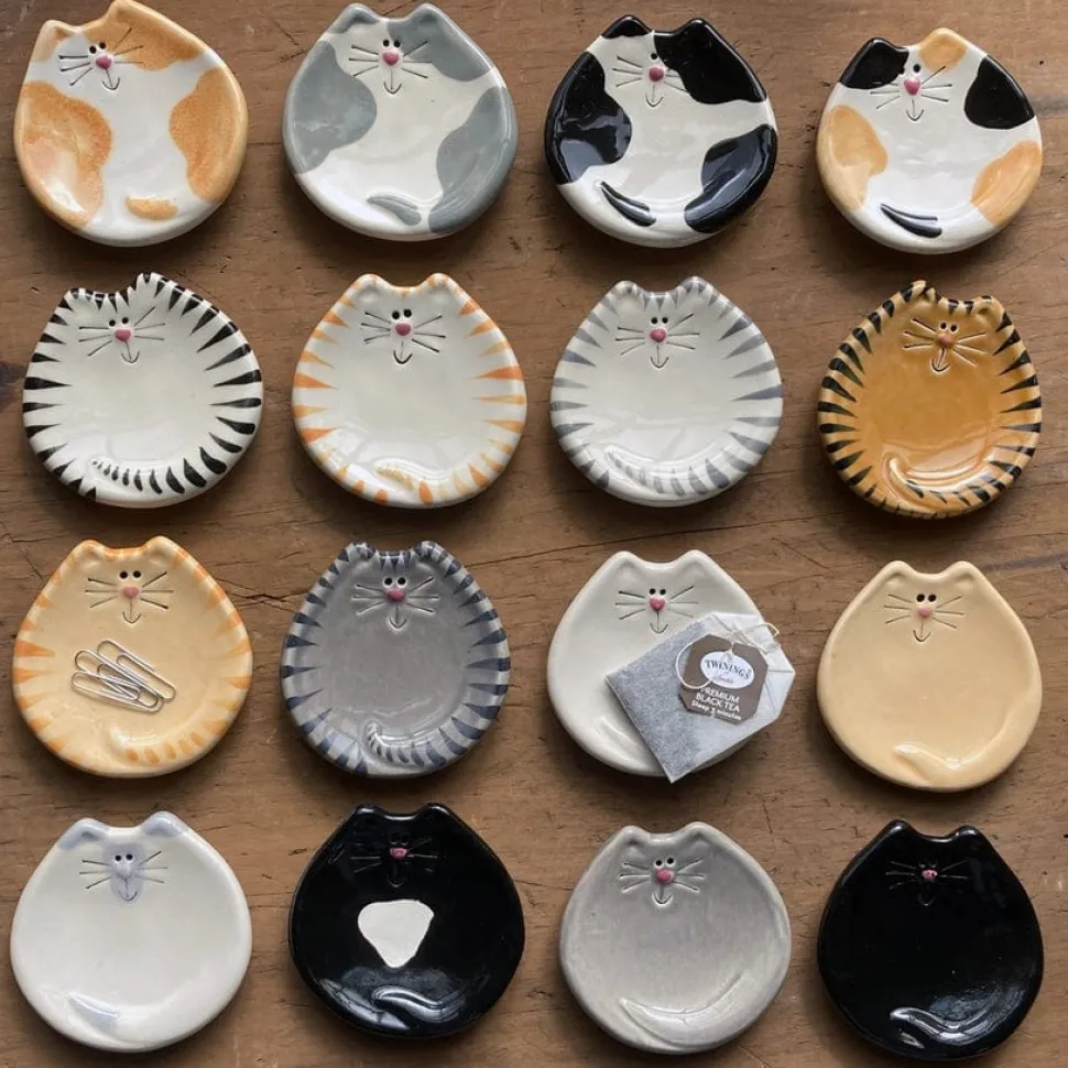 Introducing the purrfect addition to your kitchen, dresser or vanity – our cat ceramic trinket dish! Not only does it double as a spoon rest or tea bag holder, but it also adds a touch of feline charm to any space. Say goodbye to messy countertops and hello to organized cuteness. Meow! Purrfect gift for cat lovers!
