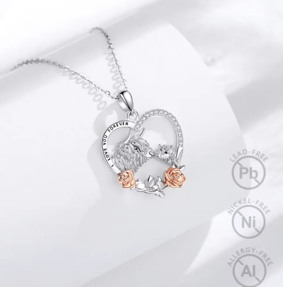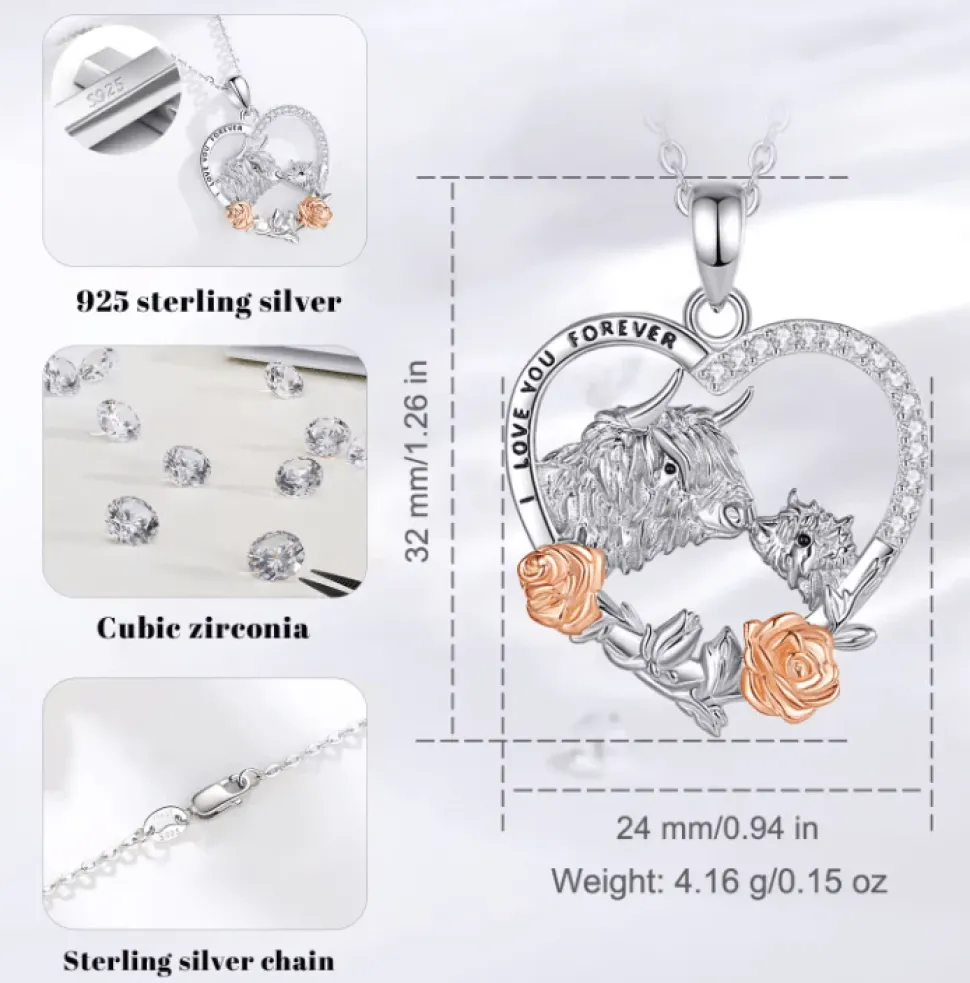 Highland cow lovers, these beautiful sterling silver necklaces beautifully capture the adorable charm of the highland cow with rose gold-plated accents. This necklace will be a cherished addition to your jewelry collection and makes a lovely gift for a mom, daughter, or any highland cow enthusiast. Your necklace will come with an 18″ Sterling Silver chain in a beautiful gift box.