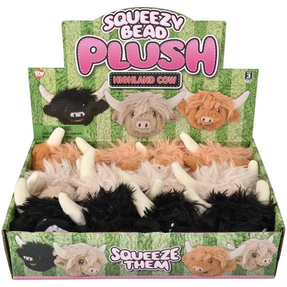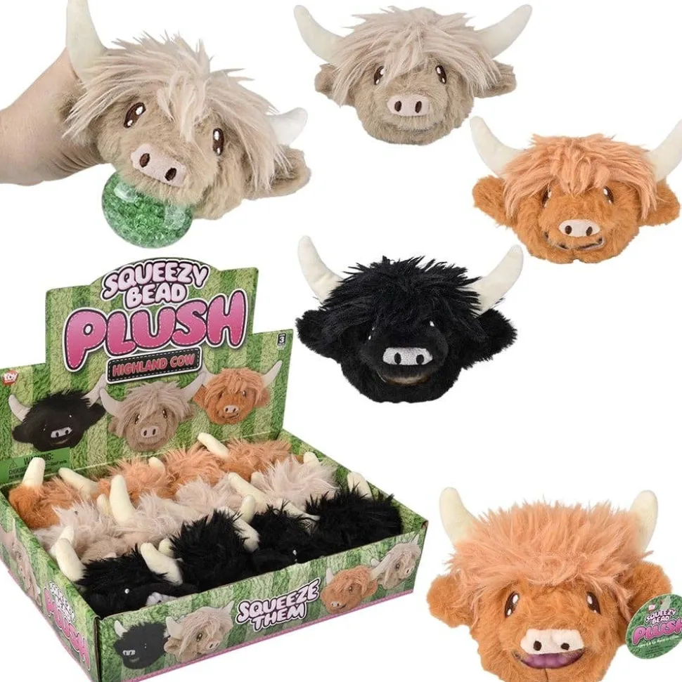 • Soft, plush squeezy bead balls inspired by highland cows.