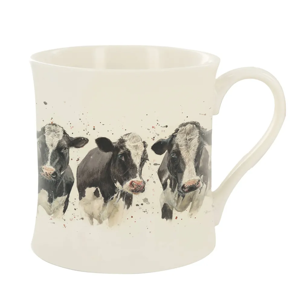 Cute group of black and white holstein cows with their curious look on this beautiful mug by Bree Merryn in the UK. We are not amooosed, these cute cows will be a favorite of our cow fanatic friends! Fine china yet dishwasher and microwave safe. Handwashing is recommended to keep it looking new. Let these ladies trot into your home or give them as a gift. Beautifully boxed.