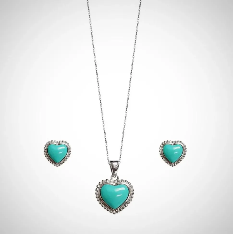 Jimmy Crystal Turquoise Heart Jewelry Set, Necklace & Earrings in Sterling Silver