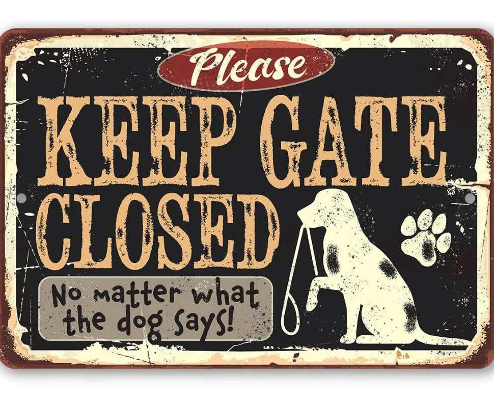 Introducing the “Keep Gate Closed Dog” Metal Sign – Add a Dash of Humor and Functionality to Your Space!