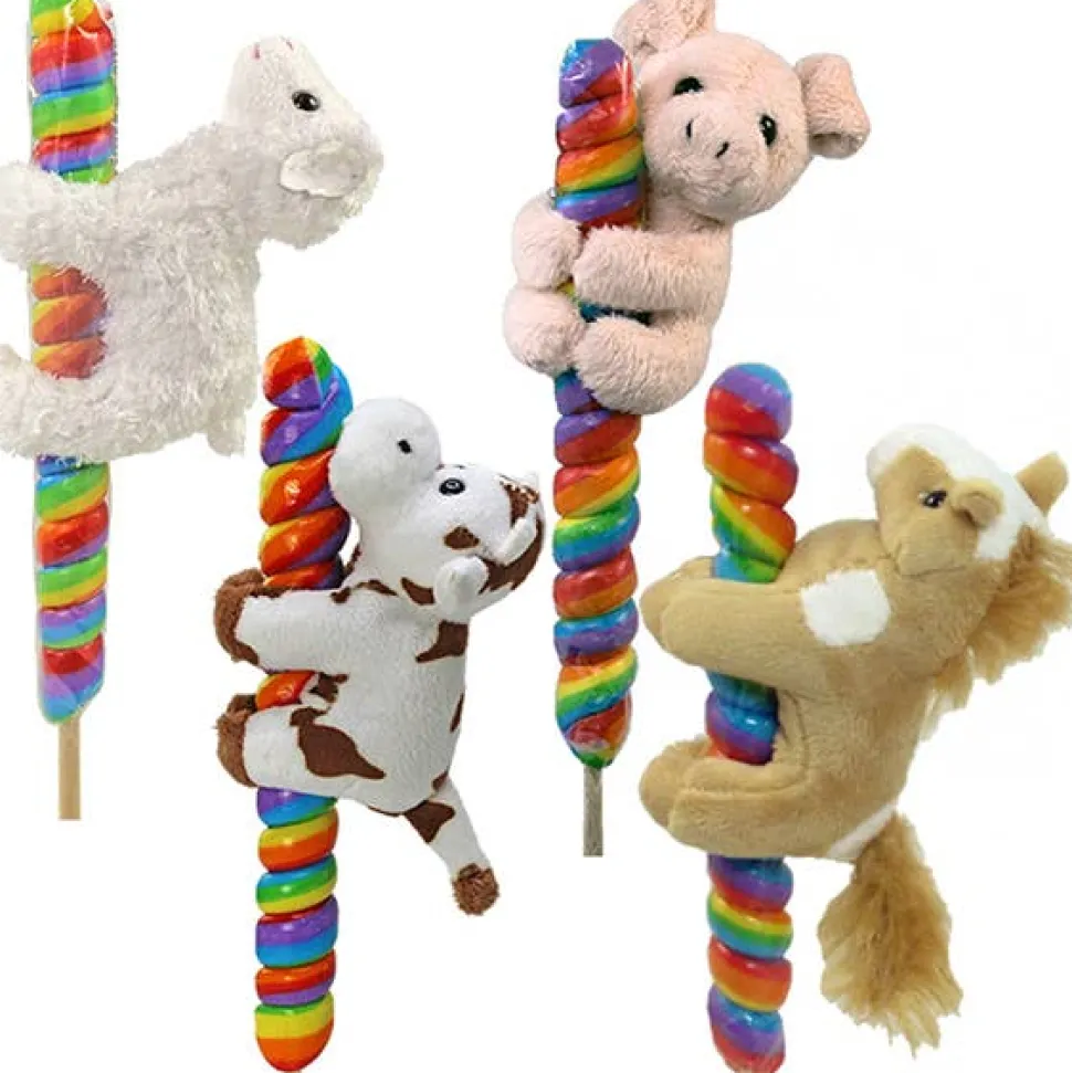 These Plush Pops are two Gifts in one! Any child will be delighted to receive this Twisted Lollipop candy with 4″ Plush Farm Animal. A perfect treat, birthday gift or stocking stuffer for Christmas!