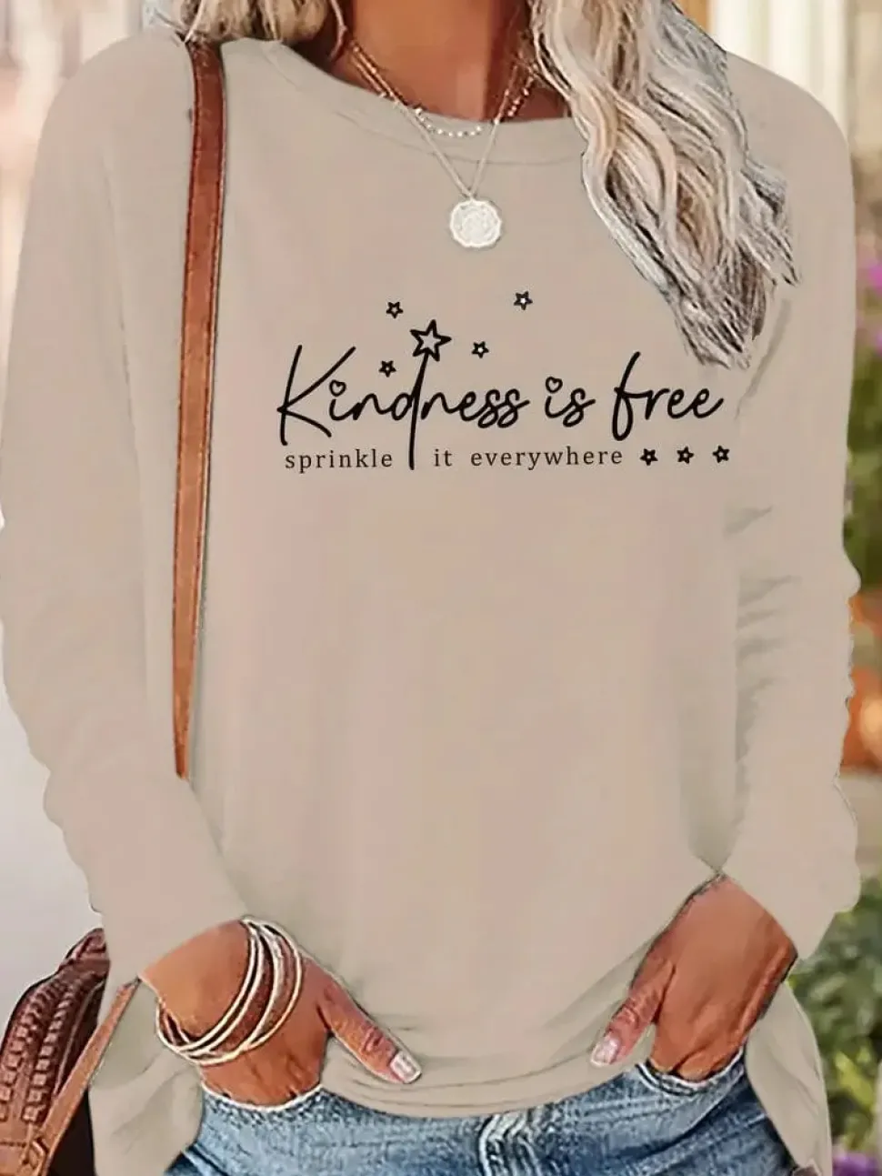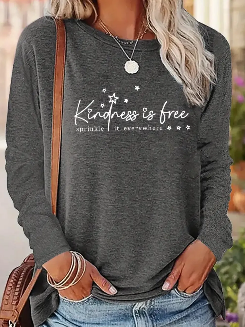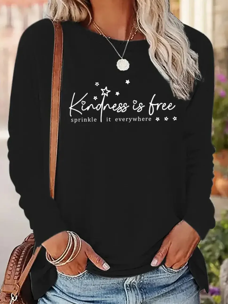 If there is one thing we need more of in this world, it is kindness. This shirt serves as a beautiful reminder for everyone to be kind—and to be kind often. Wear it with pride; it will help keep you on the right path. Made from 100% polyester, this t-shirt features an applique design and is machine washable and dryable. Enjoy its nice quality and soft feel. Crew neck, long sleeves. Perfect for fall weather!