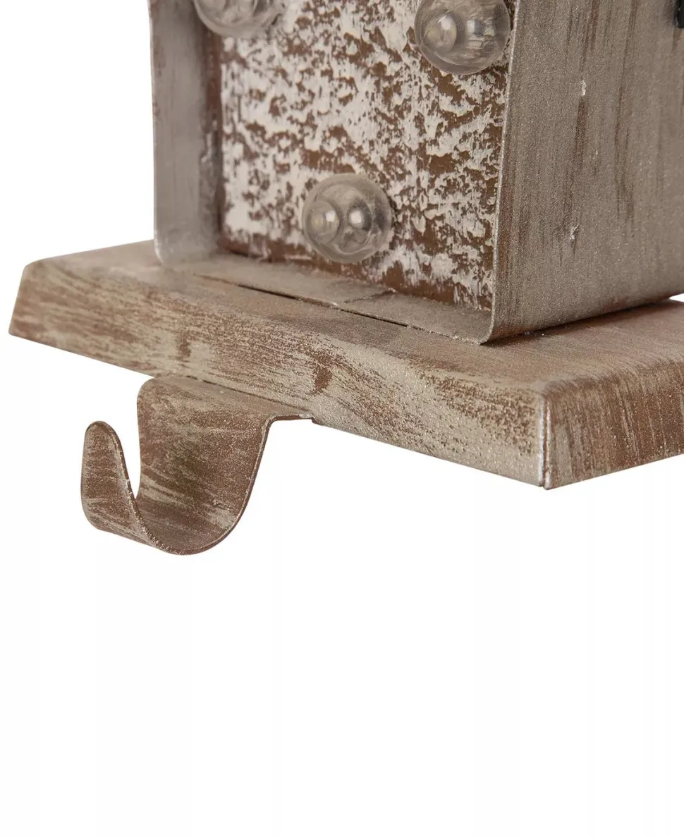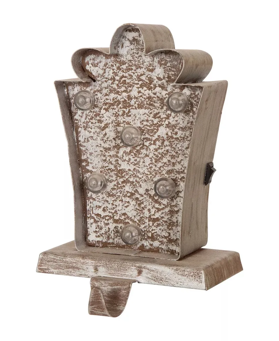 It is one member of our Christmas collection. This galvanized metal giftbox stocking holder combines illuminating holiday ambience with a holder hooking cheer. It is made to decorate your home in the special season with classic design.