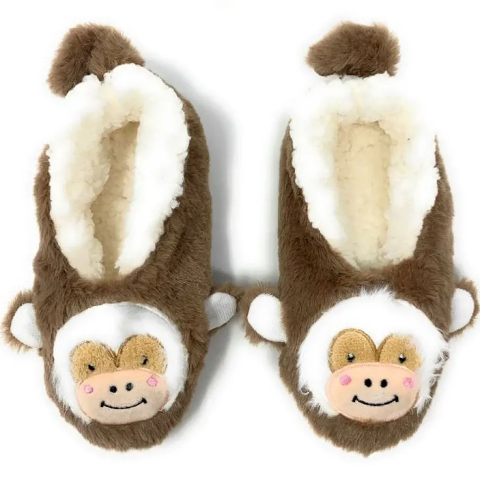 These CUTE and toasty plush monkey footie socks will light up the room wherever they go! 100% polyester and super soft with a slip resistant bottom, you’re feet will be thrilled to cozy up in them after a day at work.