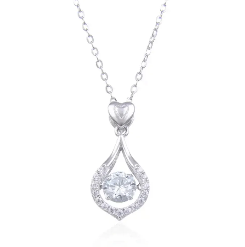 Get ready to shine with this elegant 6.5mm, 1ct Moissanite necklace set in 925 Sterling Silver for women! Made from luxurious 925 silver, this dazzling necklace features a sparkling twinkle setting design that will captivate everyone around you. The teardrop-shaped frame holds a dancing stone with a heart above it, making this necklace a perfect gift for your loved one. It comes with an 18-inch chain, adjustable to 16 inches. If you adore sparkle, this necklace is a perfect choice for you.