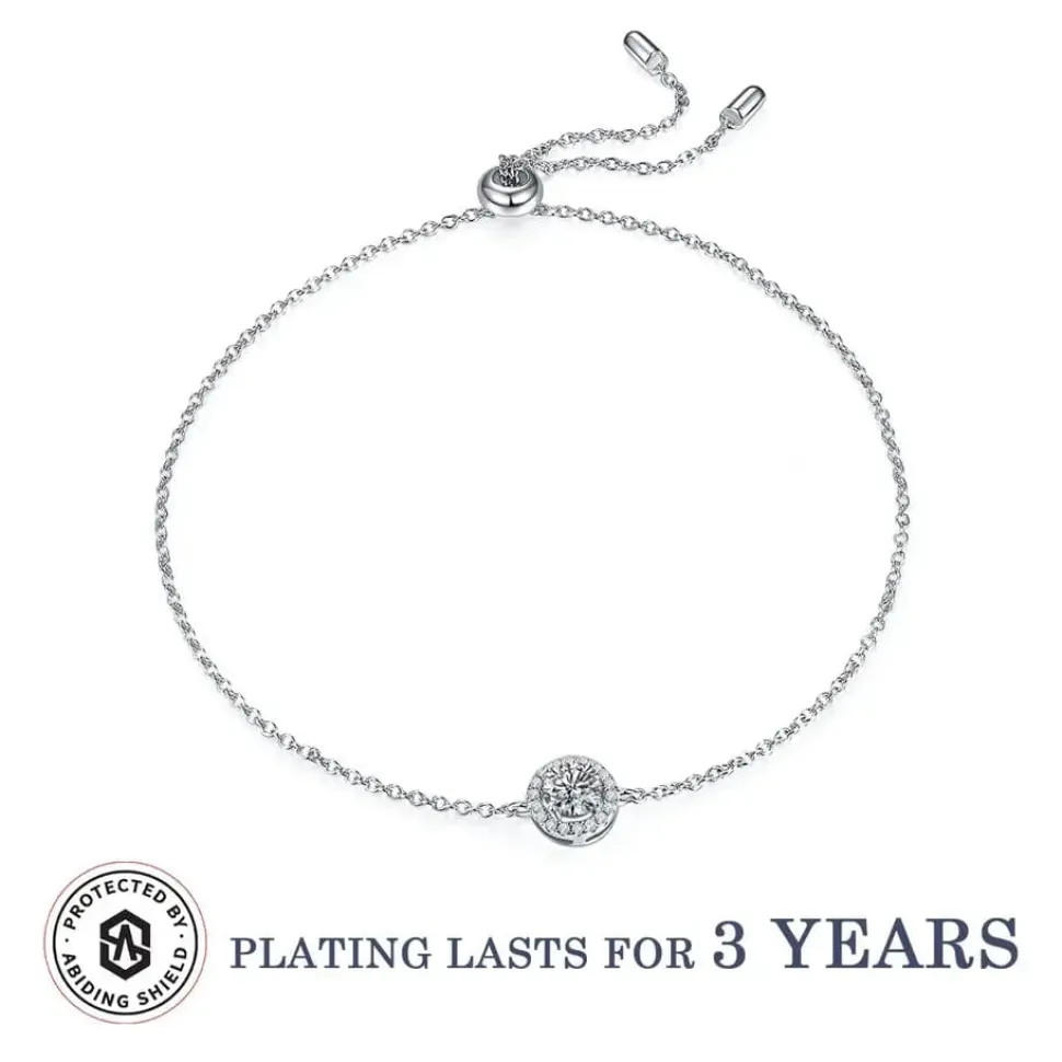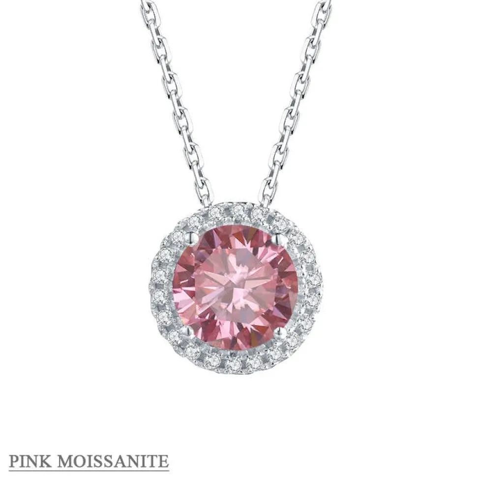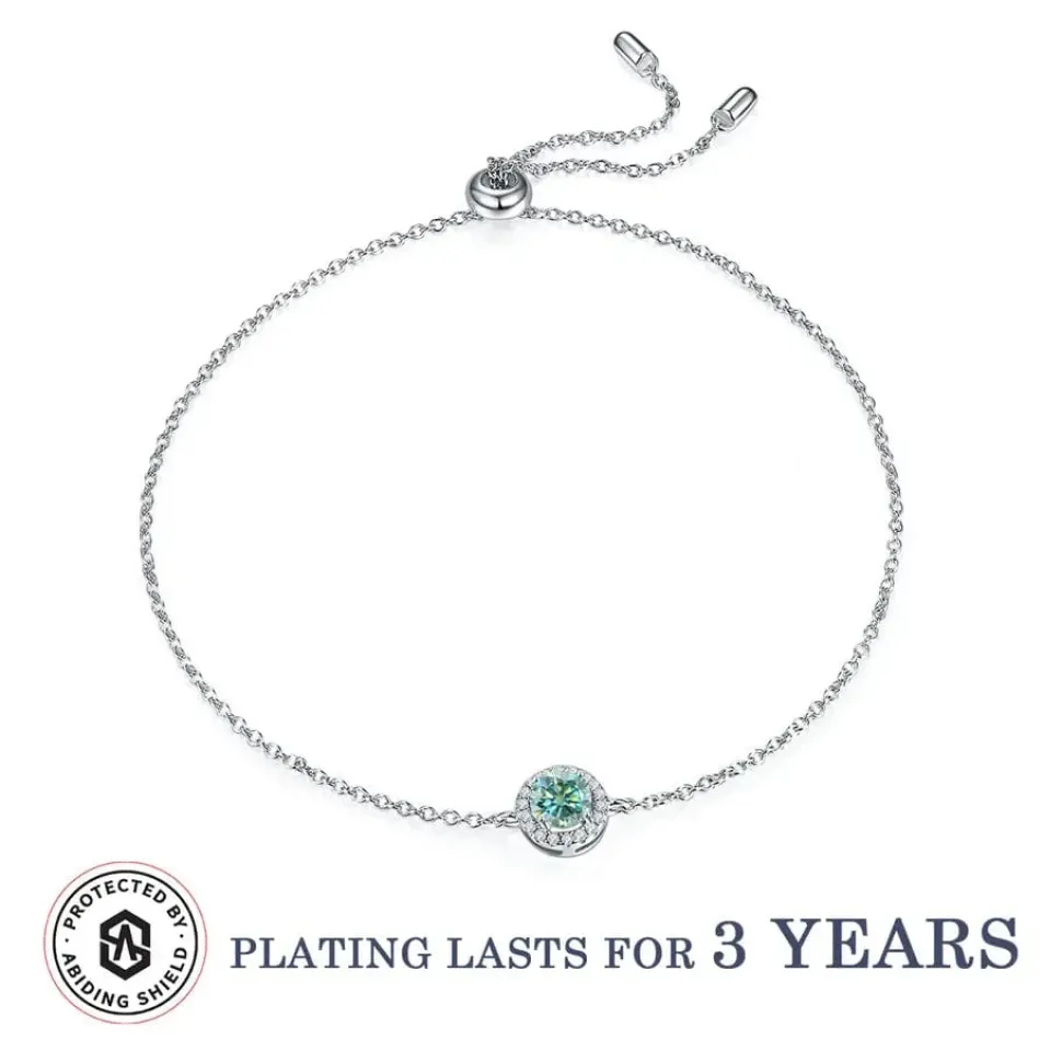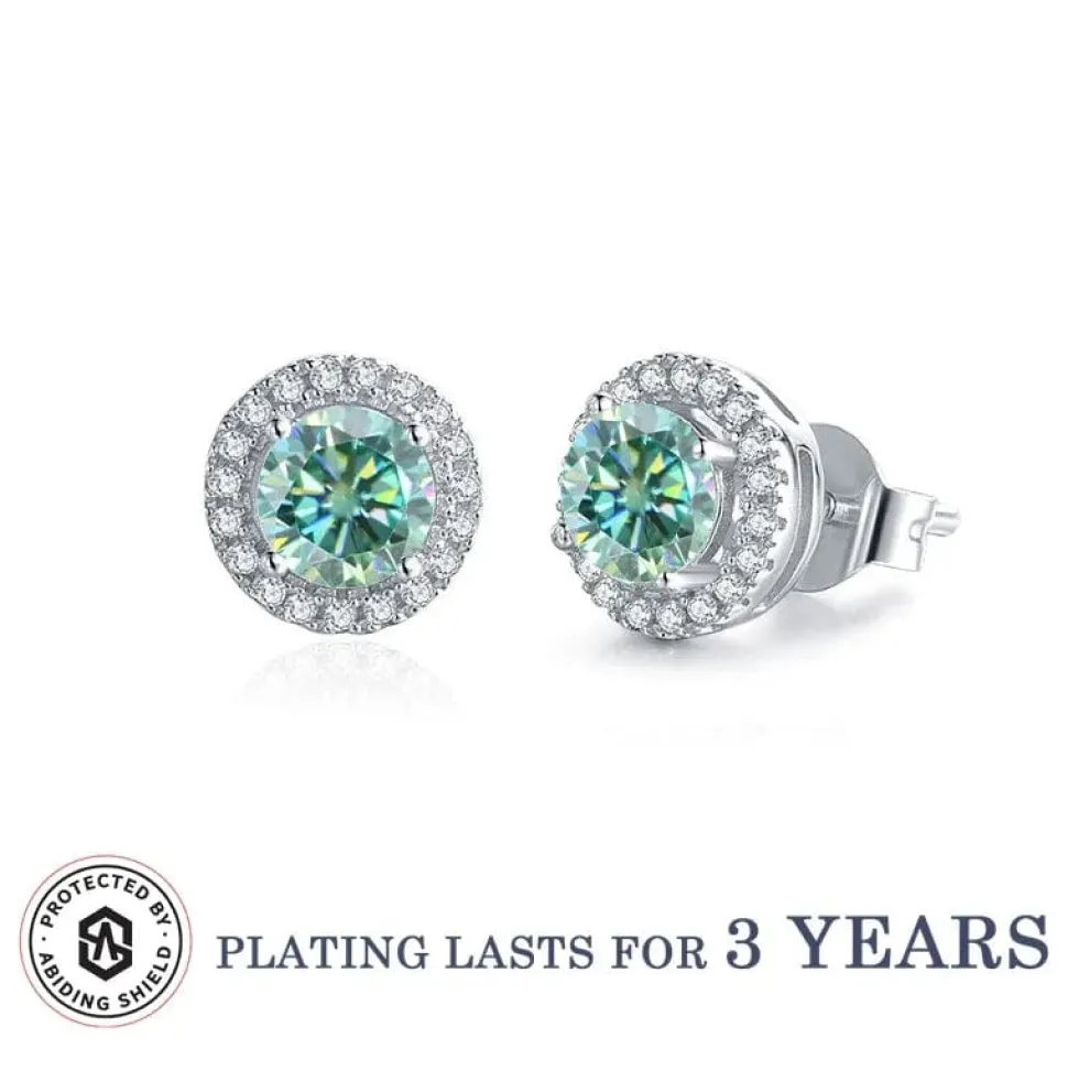 Colored Moissanite Halo Setting Jewelry in a stunning choice of colors! What sets our beautiful jewelry apart is the Abiding Shield Plating which guarantees that the gold plating of our 925 Fine Sterling Silver jewelry will not wear off or change appearance for at least 3 years. Tarnish and waterproof, never worry about your jewelry again!