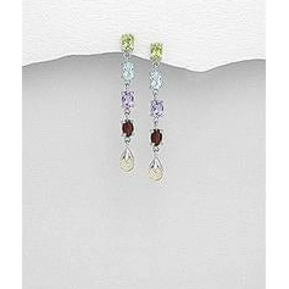 925 Sterling Silver Push-Back Earrings Decorated With Amethyst, Citrine, Garnet, Peridot And Sky-Blue Topaz