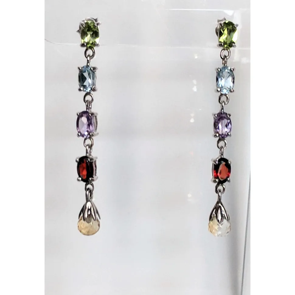 The longer raindrop Amethyst, Citrine, Garnet, Peridot and Swiss Blue Topaz earrings are glamorous enough for an evening out or lovely enough for around the office. The more reserved but equally beautiful Amethyst and Swiss Blue Topaz earrings are very elegant, you will look amazing with either or both! And we have many gorgeous rings and necklaces that these earrings would go well with.