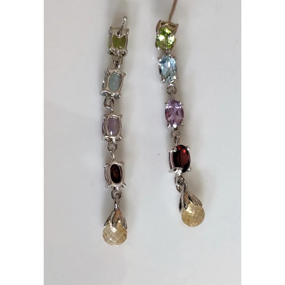 Two different styles of multi-gemstone earrings, one long and one short, These beautiful earrings are sure to draw compliments whenever you wear them! You can be especially proud showing them off knowing that all proceeds from your purchase were put to work helping rescued animals. The dangling multi gemstone earrings are the most beautiful earrings and both pair are top quality, gorgeous works of art that will compliment your beauty perfectly.