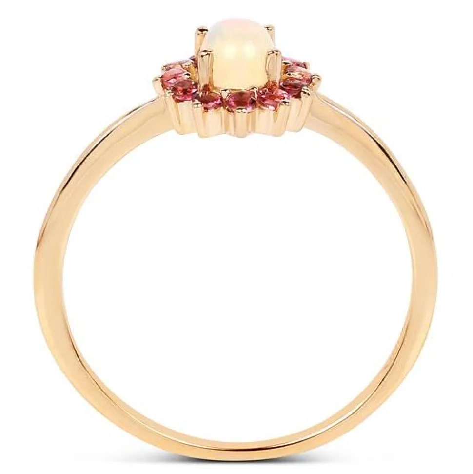 This delicate little ring brings together both October birthstones in one beautiful piece! Ethopian Opal and pink tourmaline are a gorgeous combination of color. They will not disappoint! Set in fine 14K yellow gold, this is a gift that will be treasured for a lifetime or spoil yourself with a beautiful treat! ALL proceeds help rescued animals so you can feel good about your purchase and you will never pay retail with us.