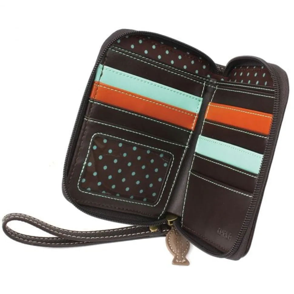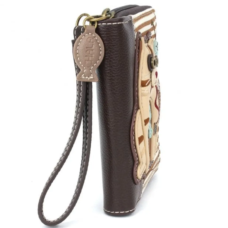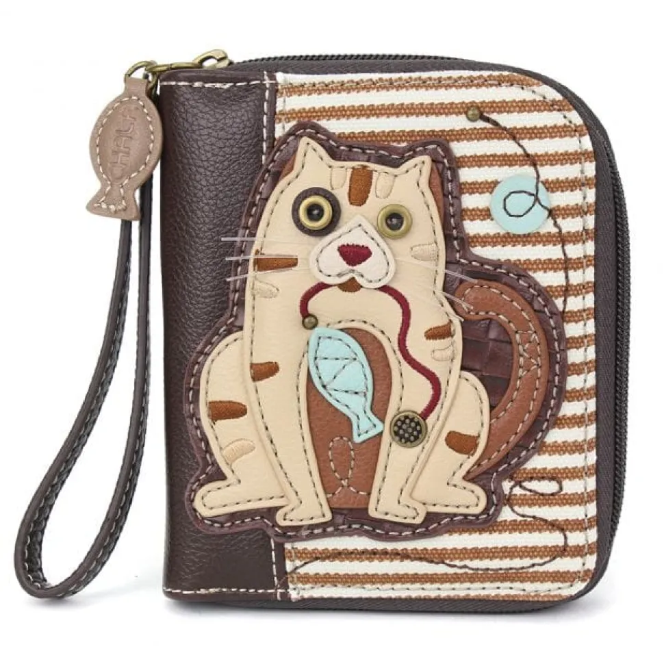 Stylish, Fun, Functional. This chala zip around wallet is perfect for on the go; featuring brown stripes and gen II cat with a fish, not only is it stylish but it’s incredibly adorable too!